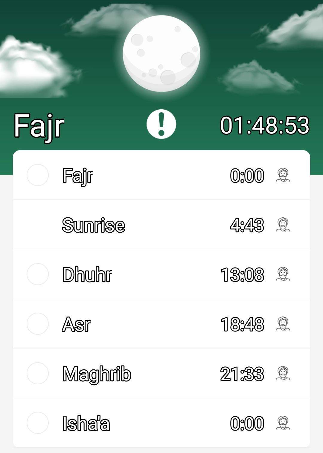 Dieses Gebet wird in der Zeit zwischen Mittag und Abend etwa im letzten Drittel verrichtet. Asr Nachmittag Gebet. Die Freitagsgebetszeiten werden zur selben Zeit wie die Mittagsgebetszeit durchgeführt.