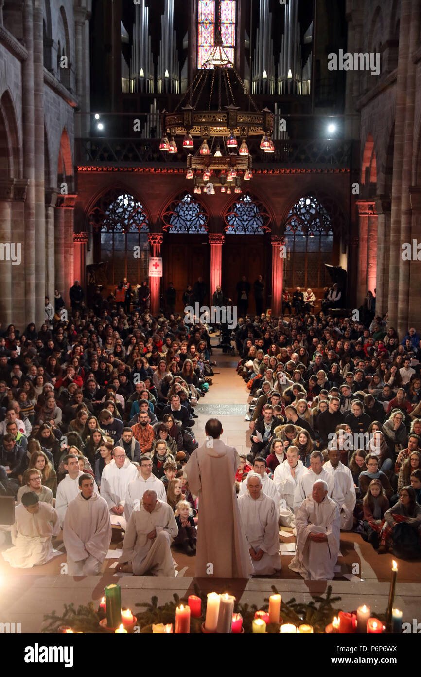 Basler Munster Munster Europaische Jugendtreffen Von Taize In Basel Die Pilger Um 12 00 Uhr Gebet Mit Bruder Alois Der Prior Von Taize Ausgehenden Gemeinschaft Sw Stockfotografie Alamy
